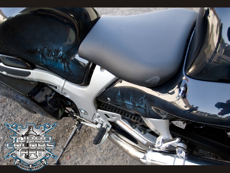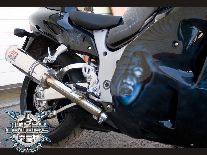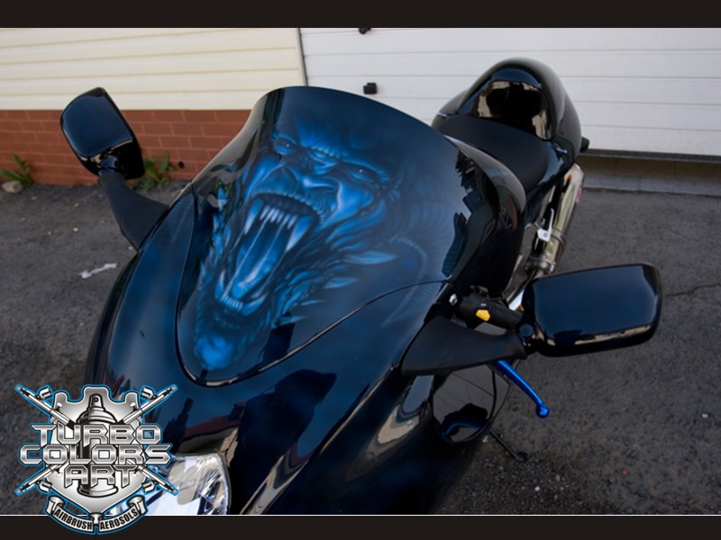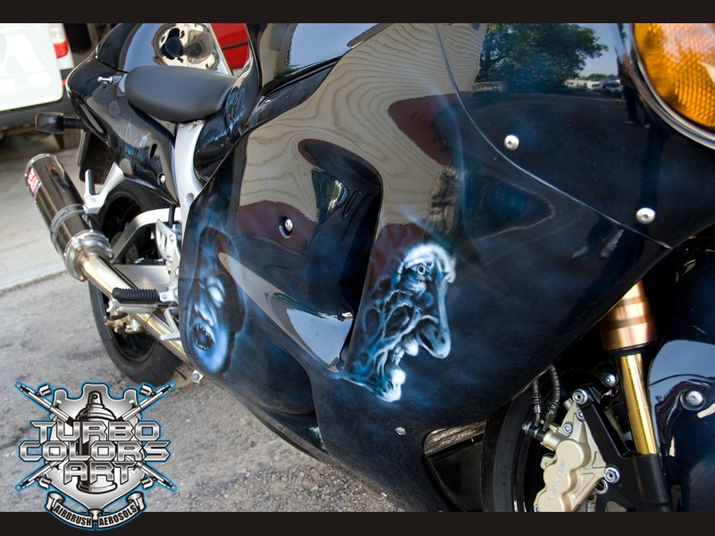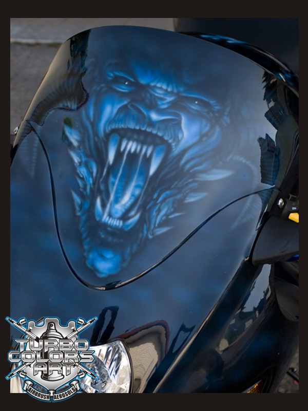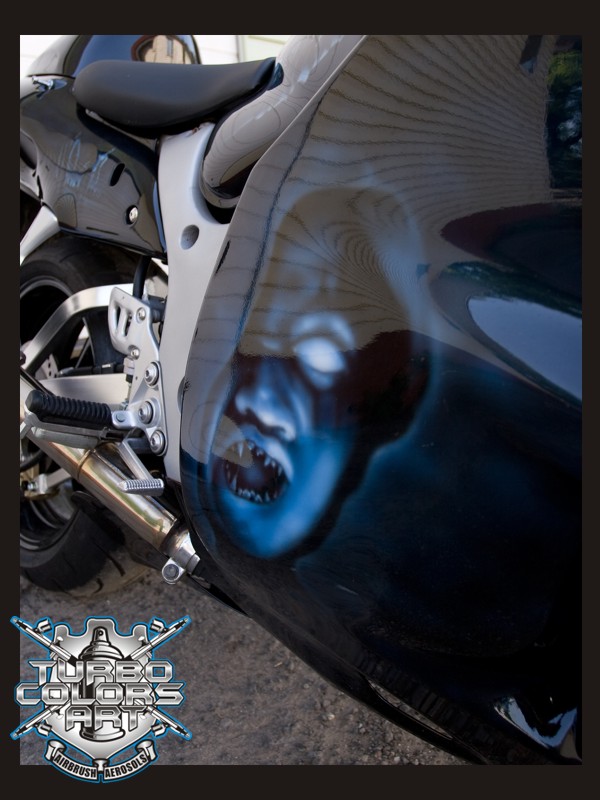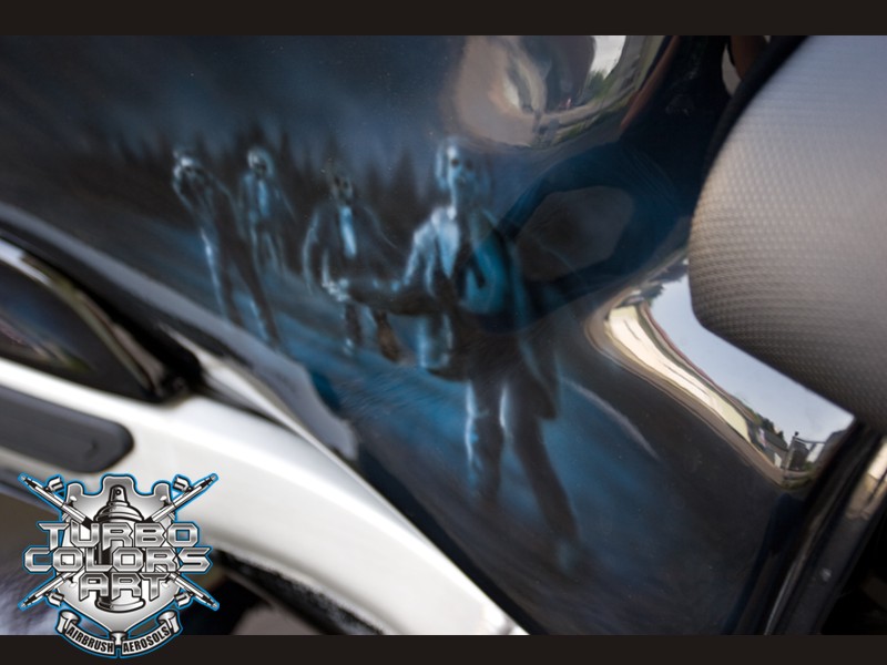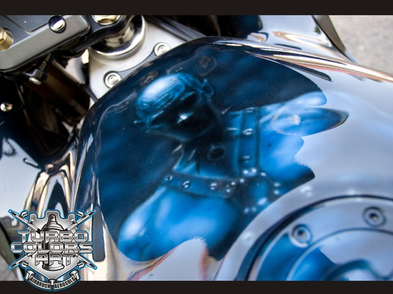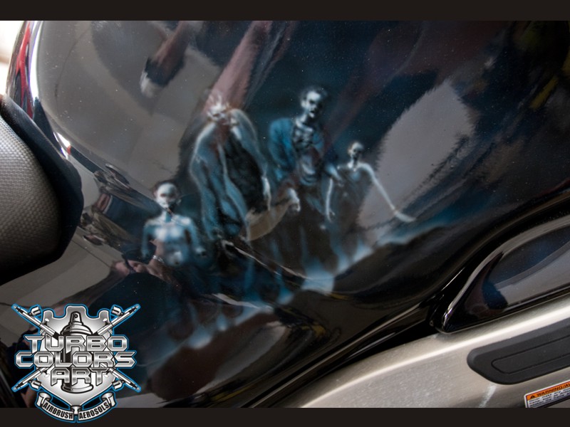 Technika która daje bardzo duże możliwości jeśli chodzi o precyzje i detale, świetnie się sprawdza na małych i dużych powierzchniach na zewnątrz i wewnątrz, niezbędna w lakiernictwie (malowanie samochodów, motorów, kasków), ogólnie jeśli chodzi o aerograf to mozna praktycznie pomalowac kazda powierzchnie: metal,plastik, drewno, papier itp. Przy tej technice zawsze pojawia się dodatkowy koszt pokrycia lakierem bezbarwnym.