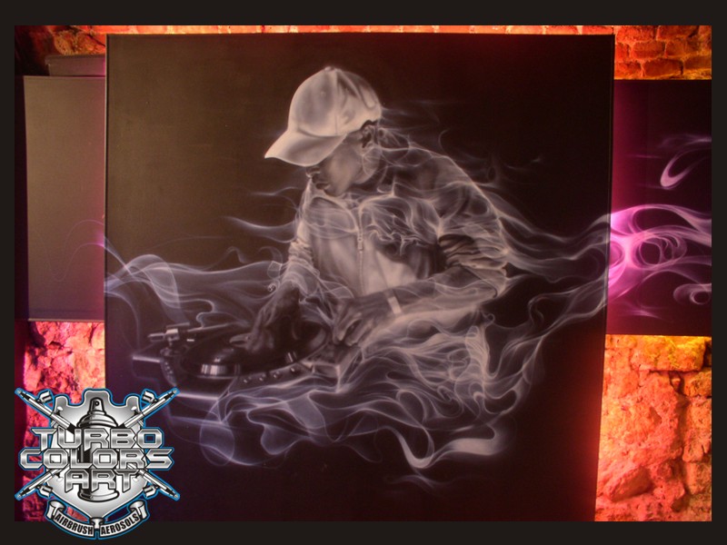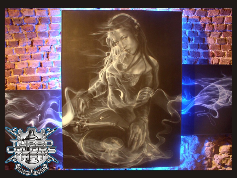 Technika która daje bardzo duże możliwości jeśli chodzi o precyzje i detale, świetnie się sprawdza na małych i dużych powierzchniach na zewnątrz i wewnątrz, niezbędna w lakiernictwie (malowanie samochodów, motorów, kasków), ogólnie jeśli chodzi o aerograf to mozna praktycznie pomalowac kazda powierzchnie: metal,plastik, drewno, papier itp. Przy tej technice zawsze pojawia się dodatkowy koszt pokrycia lakierem bezbarwnym.